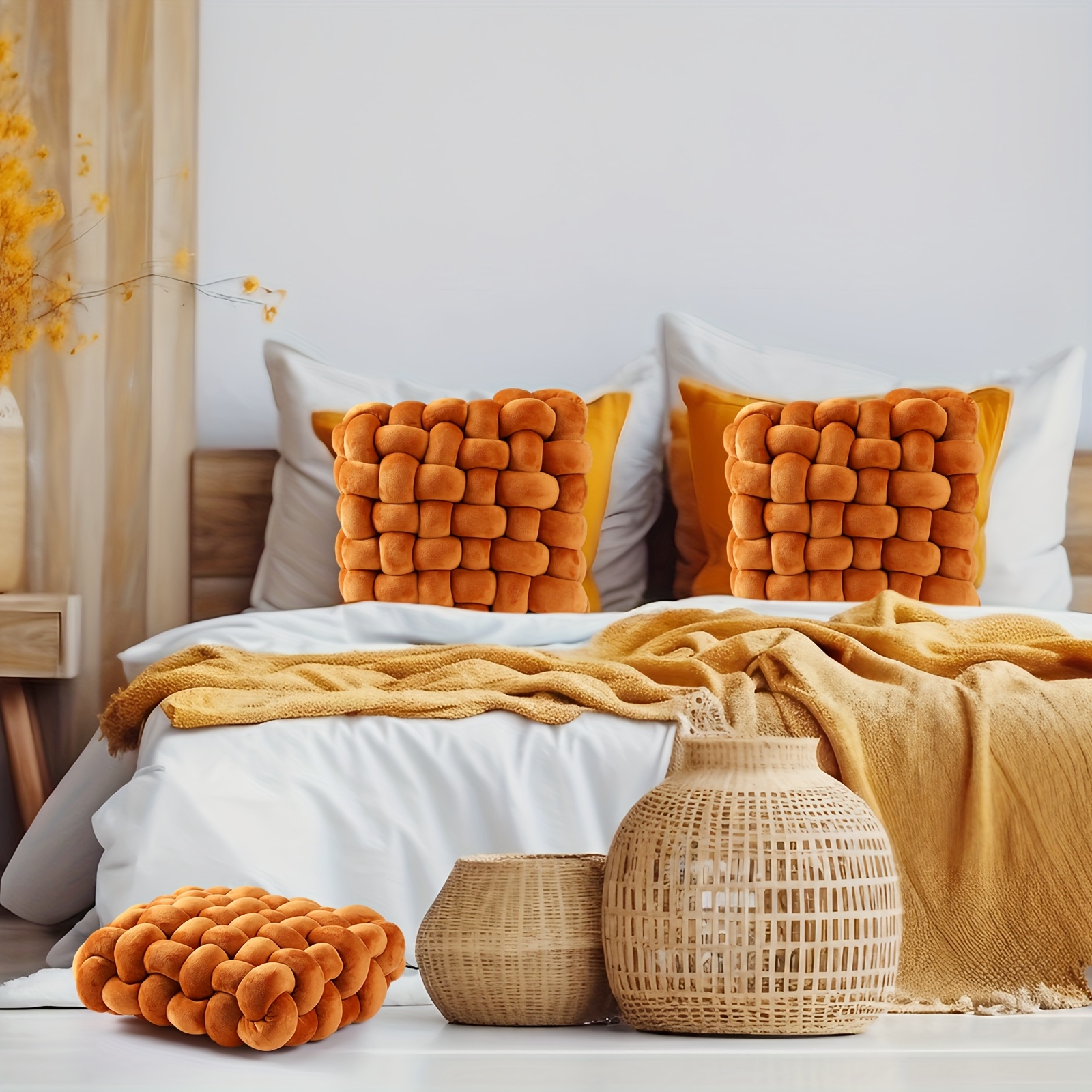 2pcs Knot Pillow Soft Throw Pillow Home Decoration Cushion Square Office Knotted Plush Throw Cushion For Living Room Bedroom Sofa Couch Living Room Decor, 12'' X 13''