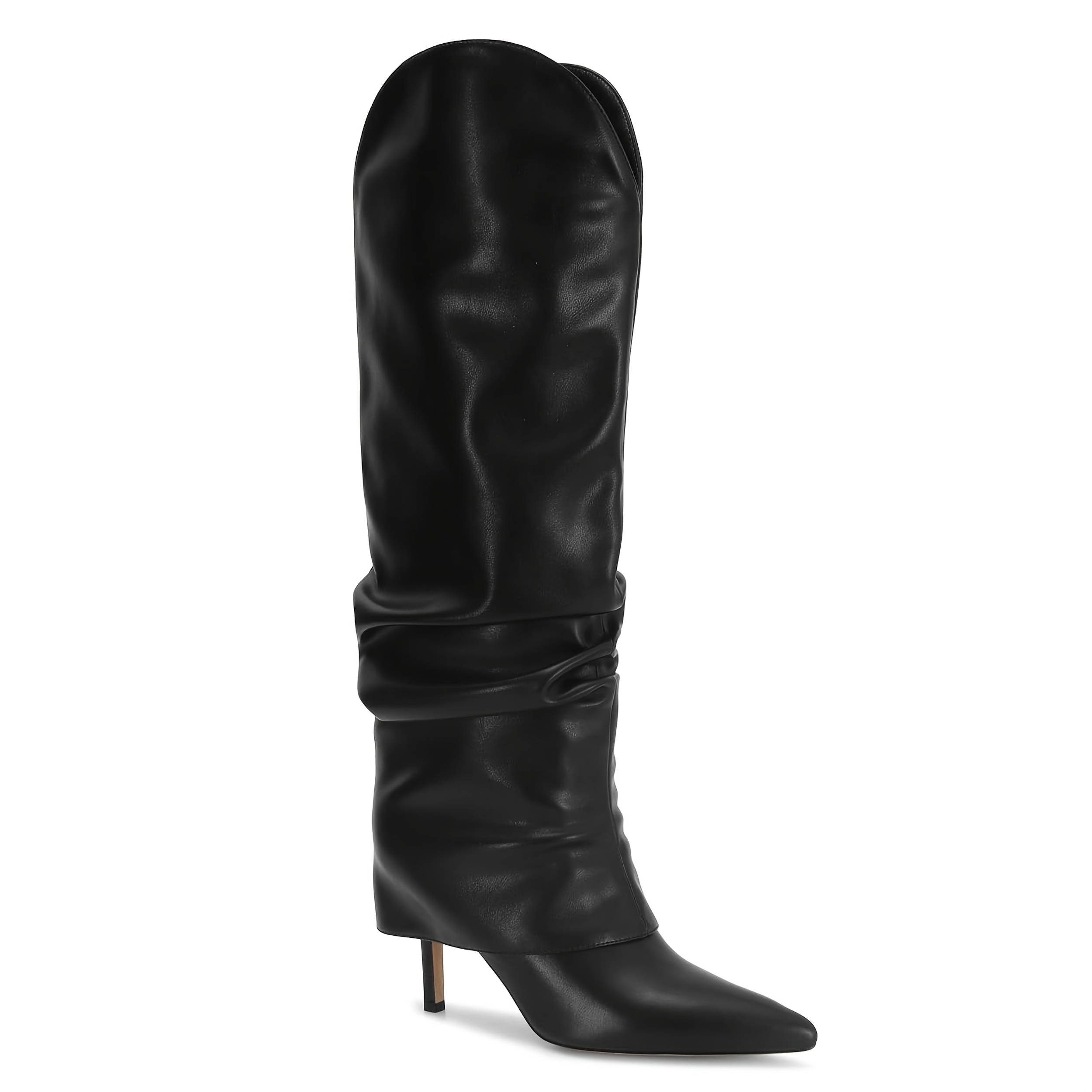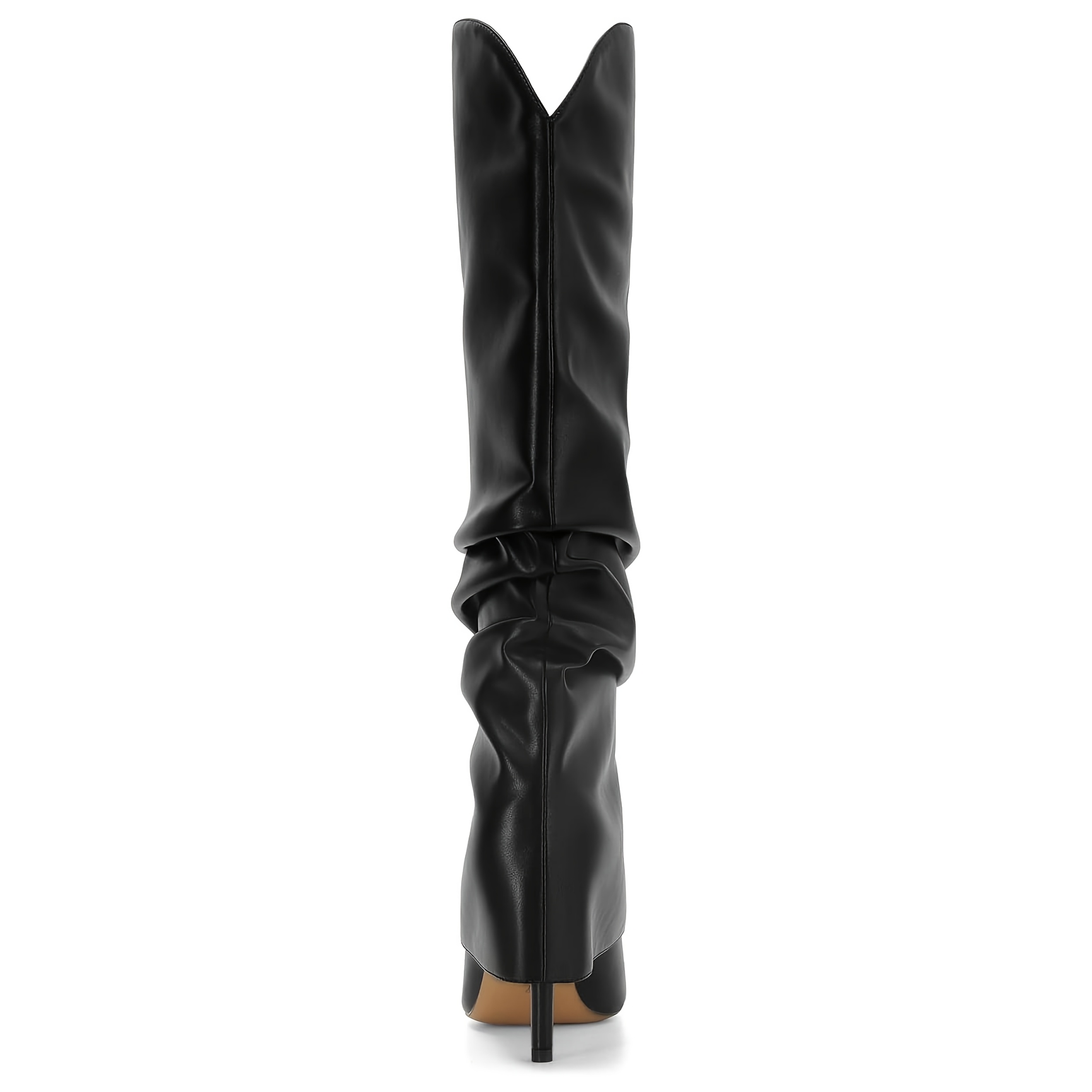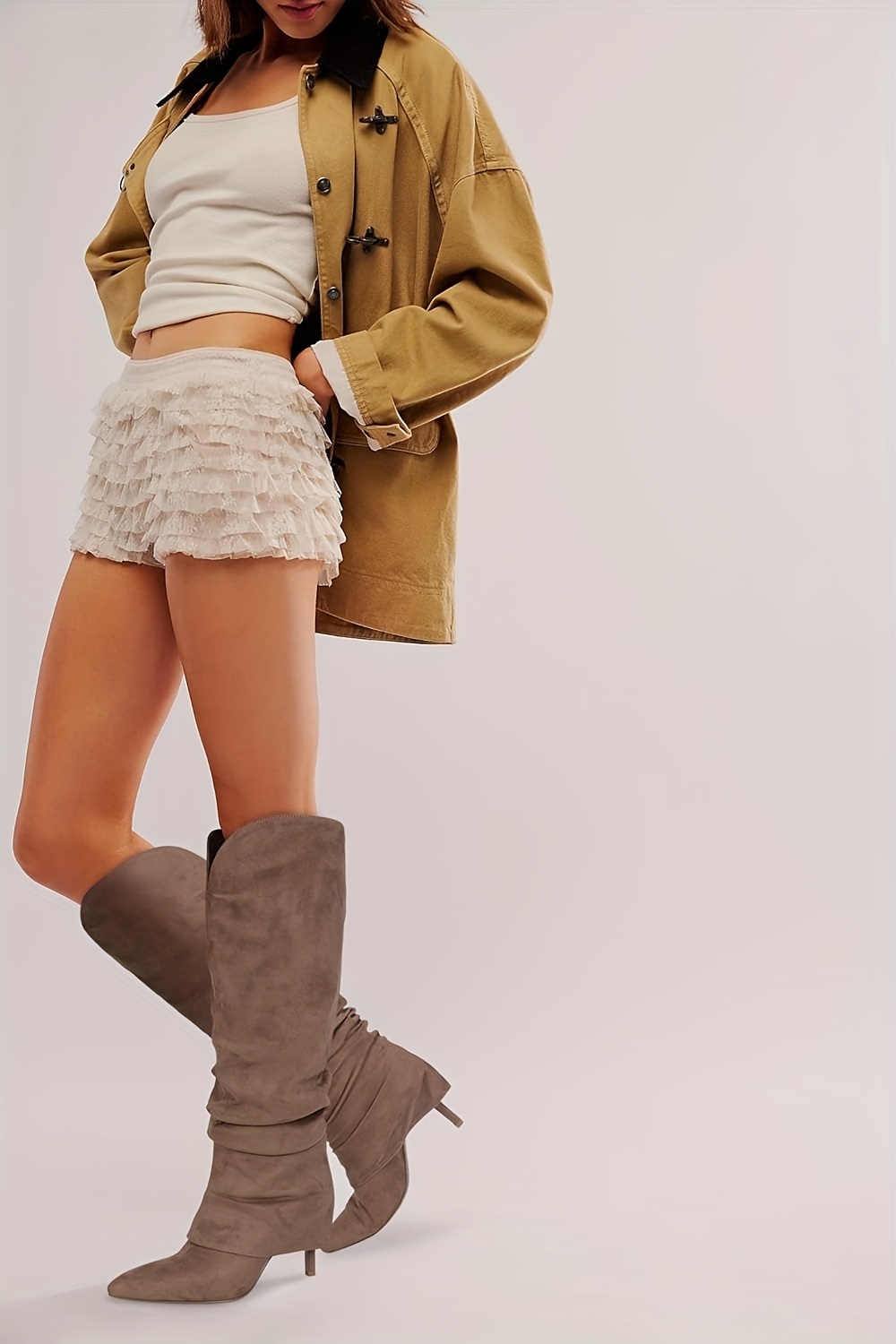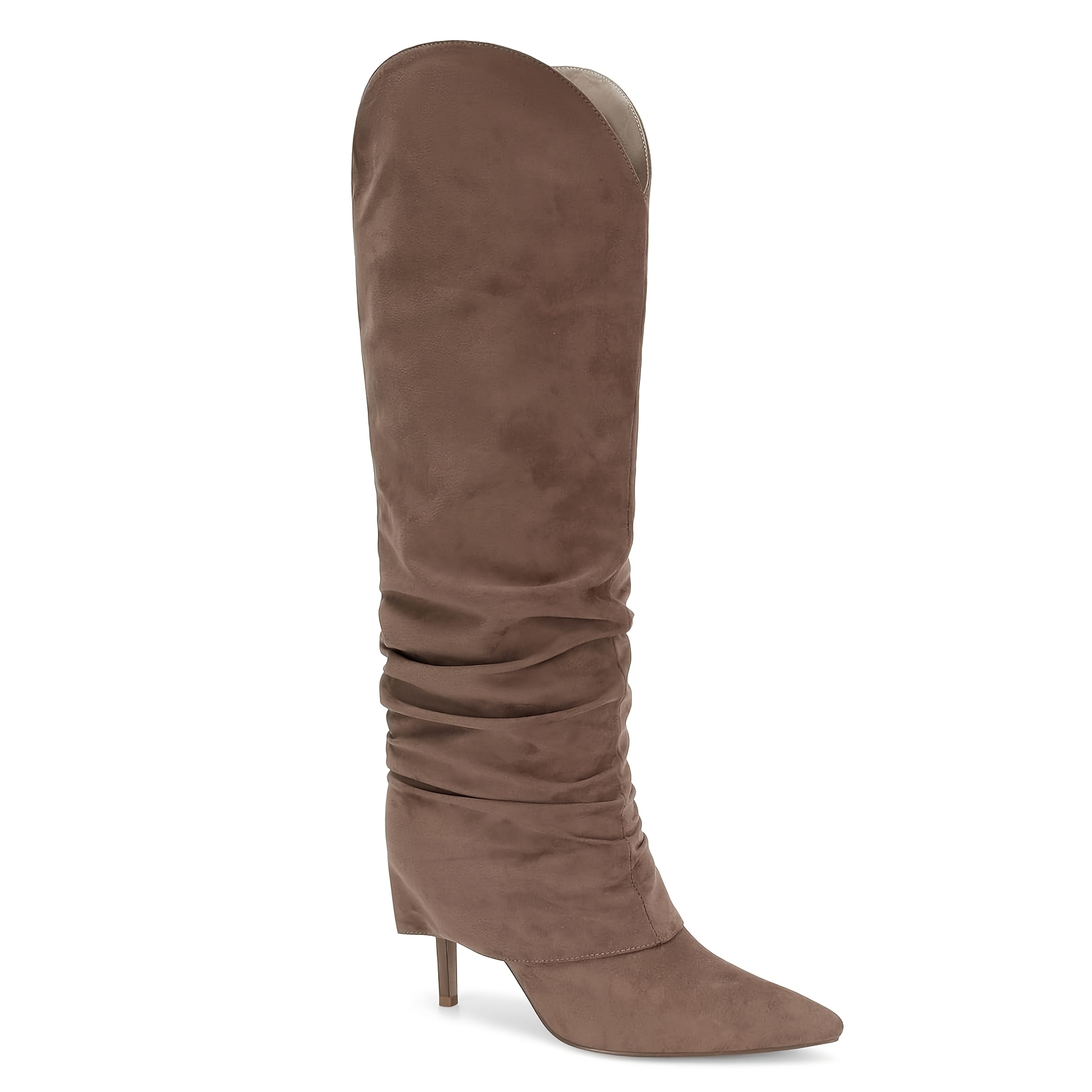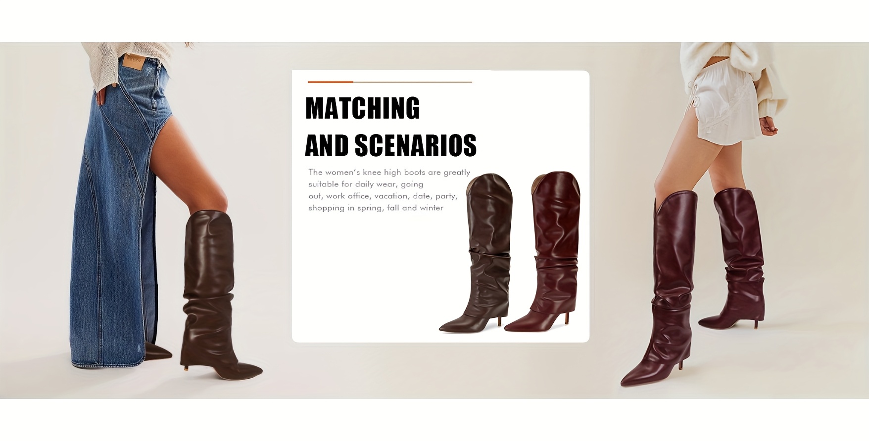 Women'S Genuine Leather Fold Over Knee High Boots - Wide Calf Pointed Toe Stiletto Heels, Pull-On Closure, All-Season Tall Booties with Cushioned Insole & Arch Support, Brown/Coffee - Versatile for Ca