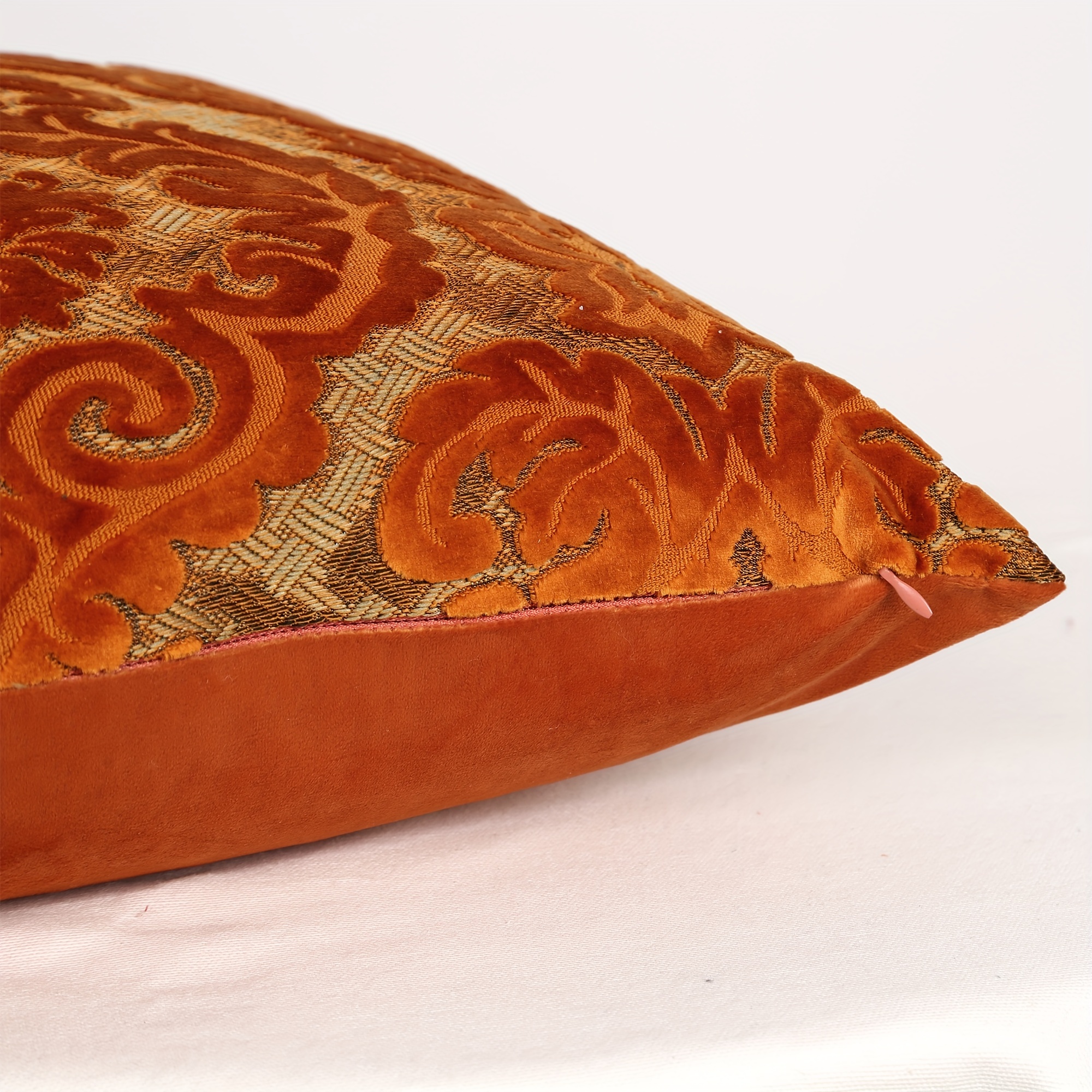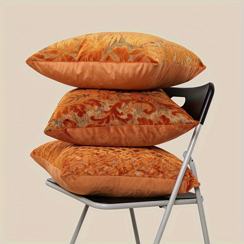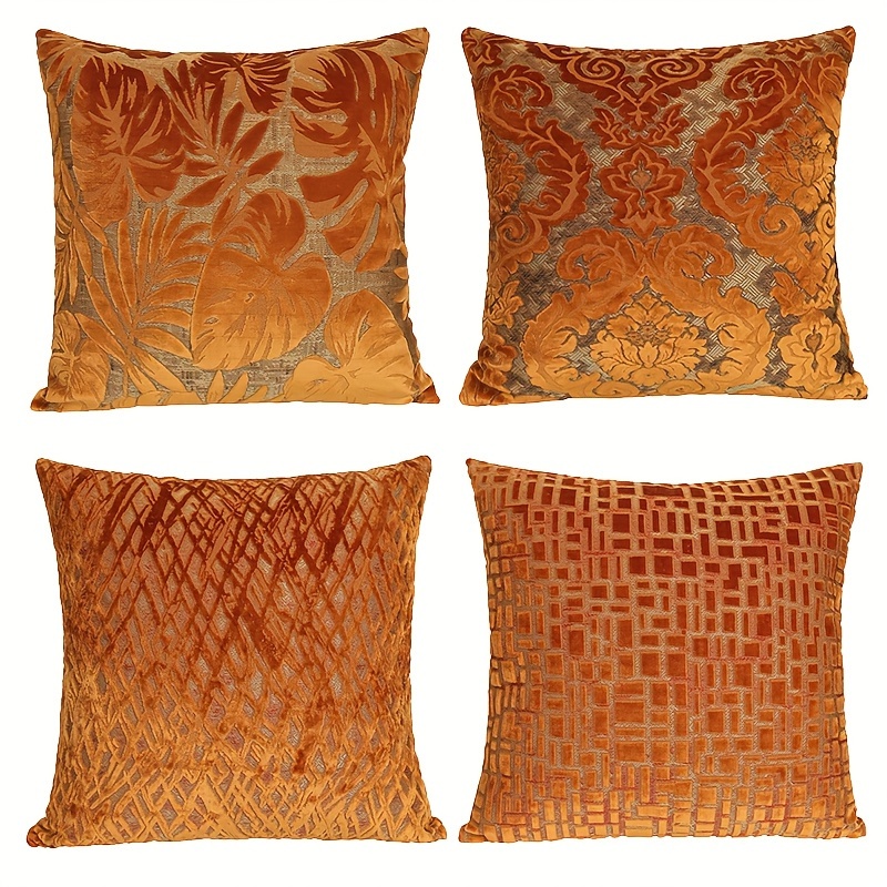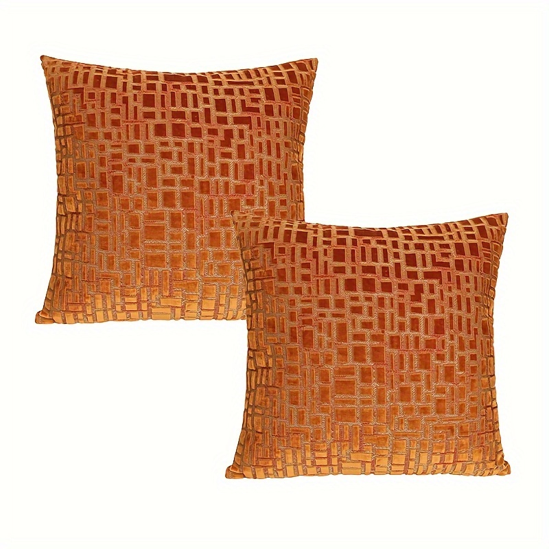 Vintage Orange Geometric Jacquard Velvet Throw Pillow Covers | 18x18 Inch Square Decorative Cushion Cases, Zippered Polyester Covers for Couch Sofa, Living Room, Bedroom