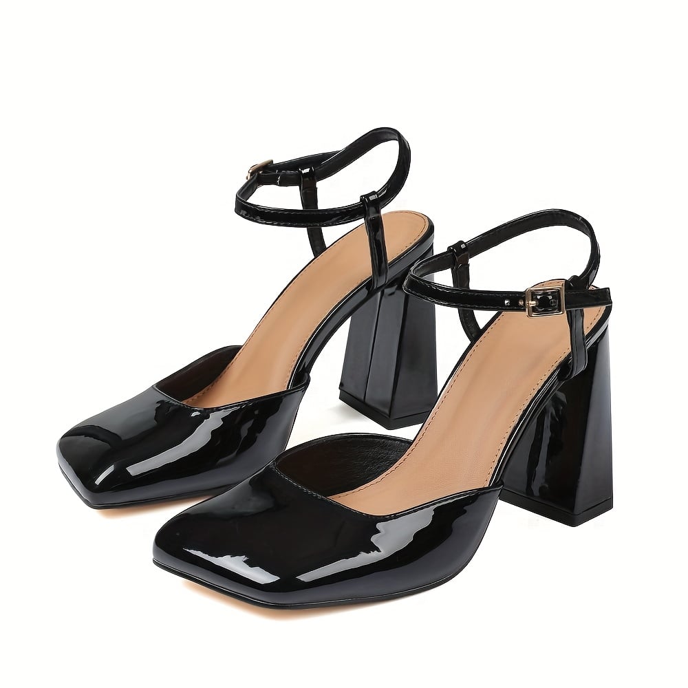 SPECIFICATIONS - All-season: All-season - Brand: EROCALLI - Closure: Buckle - Heel Hight: High Heel - Heel Type: Block heel - Inner Material: man made materials(polyurethane) - Insole Material: man made materials(polyurethane) - Item ID: GM2645937 - Operation Instruction: Do not wash - Pattern: Solid color - Printing Type: No Printing - Sole Material: Rubber - Strap Type: Ankle-strap - Style: Elegant - Toe Style: Square toe - Upper Material: man made materials(polyurethane)